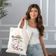 These bags were super cute (I purchased 3). The material is more of a canvas look & feel. The colour of the bag is slightly off white, but the letters look exactly as pictured. I took 3 photos in different lighting. Would recommend! I liked how there was an option to choose the font and colour of the name. The words are legible and the colours are exactly as pictured.