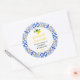 This fun and whimsical sticker features watercolor citrus lemons and foliage on a blue Mediterranean tile background. It is perfect for labelling your homemade treats. The text combines handwritten script and serif fonts for a stylish and modern look.