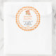 This fun and whimsical sticker features a peach pie on a white lace doily and orange gingham background. It is perfect for labelling your homemade goods. The text combines handwritten script and serif fonts for a stylish and modern look.