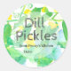 A canning jar label sticker featuring cucumbers on the vine illustrated with watercolor that you can customize with your product details and personal message along with the date the product was made.