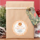 This fun and whimsical sticker features a pumpkin doughnut on a white lace doily and orange gingham background. It is perfect for labelling your homemade goods. The text combines handwritten script and serif fonts for a stylish and modern look.