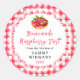 This fun and whimsical sticker features a raspberry tart on a white lace doily and pink gingham background. It is perfect for labelling your homemade goods. The text combines handwritten script and serif fonts for a stylish and modern look.
