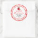 This fun and whimsical sticker features a jar of strawberry jam on a white lace doily and red gingham background. It is perfect for labelling your homemade goods. The text combines handwritten script and serif fonts for a stylish and modern look.