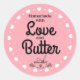 Homemade with Love and Butter Classic Round Sticker. Perfect for the detail oriented Baker! Baked with Loved and Butter what else! Finishing touch to the next batch of lovely cookies or cupcakes sent out or add to your branding collection. Cute Bakery Sticker.