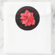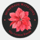 Christmas holiday personalized round stickers featuring an elegant red poinsettia with your name and greeting in chic lettering on any colour background. All text, fonts, font colours can be modified, just click the "customize further" link.