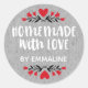 A personalized "homemade with love" sticker on a grey paper textured background. Make it yours by adding your own name. Fun for Valentine's Day, or any occasion. Makes a pretty finishing touch for all of your handmade gifts. Designed for you by Blackberry Boulevard.