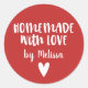 A personalized "homemade with love" sticker on a red coloured background. Make it yours by adding your own name. A pretty finishing touch for all of your handmade gifts. Designed for you by Blackberry Boulevard.