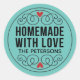 A personalized teal "homemade with love" sticker. Make it yours by adding your own name. A pretty finishing touch for all of your homemade or handmade gifts. Other colours available. Designed for you by Blackberry Boulevard.