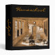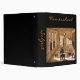 Put notes on homeschooling subjects in this binder. Black background with burnt orange script letters. Orange tinted vintage illustration of a one-room school house on cover