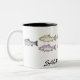 LA TASSE DE CAFÉ SAUMONÉE DE POISSONS, INDIQUE L'HOMME SAUMONÉ