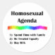 Show your true colours….the colours of the rainbow, with this unique "Homosexual Agenda" design and celebrate the gay and lesbian community.
