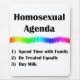 Show your true colours….the colours of the rainbow, with this unique "Homosexual Agenda" design and celebrate the gay and lesbian community.