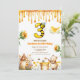 A sweet Birthday theme with bees, honey bear, a hive, little bird and yellow flowers on the front and another honey bear on the back! You can personalize this invitation with your details.