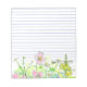 A pretty floral lined notepad with a border of wildflowers including chamomile, pinks and yellow snapdragons with a visiting honey bee drawn in ink with watercolor. Pretty for reminder notes, lists and more.