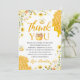 Send a buzz of gratitude with this matching "Sweet to Bee One" thank you card. Featuring the signature happy bee, honey jar, and golden honeycomb accents, this stationery perfectly completes your party suite. The bright floral corners mirror the cheerful aesthetic of your bumblebee-themed event. Blank inside for a heartfelt message to thank guests for making the day so sweet.