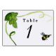 Art features a watercolor of a green vine with a leaf. A picture of a buzzing honey bee is above the table number. Words note "Table 1" but can be personalized with your own words and messages. Create your own unique one-of-a-kind table card design by customizing these template garden bugs insects table cards for your wedding, reception, or other personal event information.