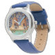 The blue band is the right color for a boys watch. My grandson loves lacrosse and the watch is easy to put on. He is ten years old. The lacrosse picture is very clear and I like the blue hands on the watch. It's good for teaching time.