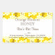 A rectangular sticker of honey bees on a honeycomb with editable script and block letters and vintage art of bees buzzing on a honeycomb with golden honey, and custom areas for the type of honey, your name, address and weight.