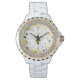 Une montre illustrant une abeille au centre. Personnalisez avec votre nom. L'Arrière - plan est floral avec les abeilles.