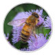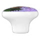 This animal ceramic door knob features a gold and black honey bee pollinating the pale purple violet flowers of an ageratum plant.