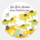 Un autocollant fleuri jaune décoré de Susans aux yeux noirs jaune vif et d'une abeille au miel illustrée d'aquarelle. Vous pouvez modifier le texte en fonction de vos besoins. Un autocollant très personnalisé pour un usage personnel ou professionnel !