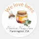 Honeybee themed round stickers, with beautiful artwork of a honeybee and jar of honey. Custom text is ready to personalize for your business. Matching products are available.