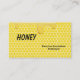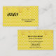 These customizable business cards have an image of honey dripping on a honeycomb pattern background.