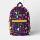 Cute originally designed text name personalized purple, pink, yellow, ruby red and diamond gemstones girls backpack. Typographical pack bag can also be customized with your own short name, currently reads Gianna. Other colours, names and styles are available, or contact me for name requests. Bright graphic text and gemstones watercolor art personalized backpack, ideal for, school, college, school camp or trips out. Other matching items are available. Original hand diamond gemstone painting and graphics design by Sarah Trett for www.mylittleeden.com