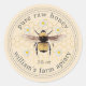 Rustic and simple honey jar labels with a vintage honeybee print and the text pure raw honey and your business name in modern typography on a pastel yellow background, with a lovely touch of white floral daisies and gold honeycomb pattern. Simply add your apiary name, the product name and the weight to the label. Exclusively designed for beekeepers by Happy Dolphin Studio. If you need any help or matching products, please contact us at happydolphinstudio@outlook.com.