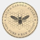 Clean vintage classic round label for honey jar for display and packaging product labels in krafts brown paper appearance with queen bee comb honey logo symbols.
