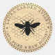 Clean vintage classic round label for honey jar for display and packaging product labels in krafts brown paper appearance with queen bee comb honey logo symbols.