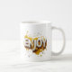 The dazzling design on the front, depicting a magnificent drop of honey flowing vertically from the top, creating an enchanting splash effect, mesmerizes your sight every time. Turn the mug around and get inspired by our uplifting message "Enjoy".