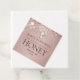 This modern, elegant honey jar neck tag has a chiseled metallic honeycomb background with stylized bee and dashed border on a pink rose gold background.