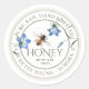 Watercolored honeybee and vintage blue bellflowers on a pale white background. "Honey" is written in a decorative font.