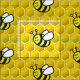 Smiling flying bee cartoon over seamless bee-hive background.