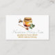 Promote your honey products with this elegant honey themed business card. Done in crisp white the front features a single golden honeybee with a jar of honey, and a honeybee, with wildflowers, on the backside. Custom text is ready to personalize. Matching business products are available.