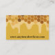 Fun design for your beekeeping and bee farm business. Design features a yellow and brown color honey comb across the top of the business card front with honey dripping down. In the honeycomb area is a white circle with yellow trim. Inside the circle is a graphic of a honey bee. Below the honey bee is customizable text in black where you can add the name of your beekeeping, honey farm business, your contact information, etc. The reverse side of the business card has the same honeycomb with dripping honey and the rest of the background is a deep, honey color. There is a place to customize with your beekeeping/honey farm web site address or your email address.
