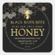 Chiseled metallic honeycomb background with stylized bee and dashed border. Yellow text on black background.