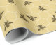 Satin gold honeycomb grid with a pattern of flying honey bees for gift wrapping baby shower presents and decorating honey jar wedding favours.