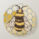 This bee round accent pillow is all the BUZZ! It's golden yellow honeycomb background pattern features a hand drawn illustration of a bumblebee in the foreground. Save the bees!