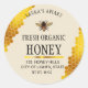 Perfect honeycomb gold product label for honey bee organic fresh honey grow apiary to represent their products in elegant and classic way.