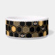 This contemporary design features a geometric gold colour beehive pattern, bumblebees, and a black colour background.