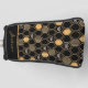 This contemporary design features a geometric gold colour beehive pattern, bumblebees, and a black colour background.