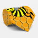 A fun tie featuring a yellow honeycomb pattern and a smiling bee.