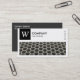 A business card template with a long rectangular image/photo area with a close-up photo of typewriter type leavers which alternatively can be replaced with your own image or photo and with a panel in the top left for a monogram or logo which includes a "W" as an example monogram which can also be changed. The design is balanced with four small rectangular text based symbols on the right created with the Semaphore symbol font. The white area is also a frame mask making it easy to position and resize a photo underneath. Company name and business type/quote on the front with name and contact details on the back in white on a contrasting dark grey background. Can be adapted to a variety of businesses and other uses.