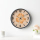 The size of the clock is dramatic and the abstract alcohol ink design is soothing and intricate at the same time. I chose the black frame that adds pop to the blue and gold design. The gold printing would be better in a slightly darker or larger font. I love it and I’m looking for just the right place in ny new apartment. I would recommend this clock for a personal gift or a present. I feel that the quality is excellent for the money! I’m a bit of a clock nut so I’m pretty particular about my purchases. The clock is larger in diameter than many if the clocks I have, so it stands out very well. I think a slightly darker printing color and a moderately larger size would best suit a professional decor or add more impact in a work place item.