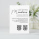 This alternative wedding registry Honeymoon Fund enclosure card features the caption "Take us to the mountains" in modern black fonts over a plain white background. Easily add up to 2 QR Codes to invite your guests to contribute to your dream vacation by sending cash donations to your payment app with their mobile phones.