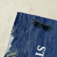 Honeymoon Getaway. Personalize newlyweds first names in white text and wedding date. Honeymoon is written in black script. Getaway and XO is written in cool yellow font. Pretty blue ocean with white foam waves and light blue sky with big fluffy white clouds. Fun keepsake beach towels for the new Mr. and Mrs. Original Photography and Design © TamiraZDesigns.