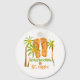Tropical design destination honeymoon keychain with your specific honeymoon location, can be customized on the spot with text or a name!