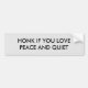 Funny bumper sticker reads, "Honk if you love peace and quiet"
